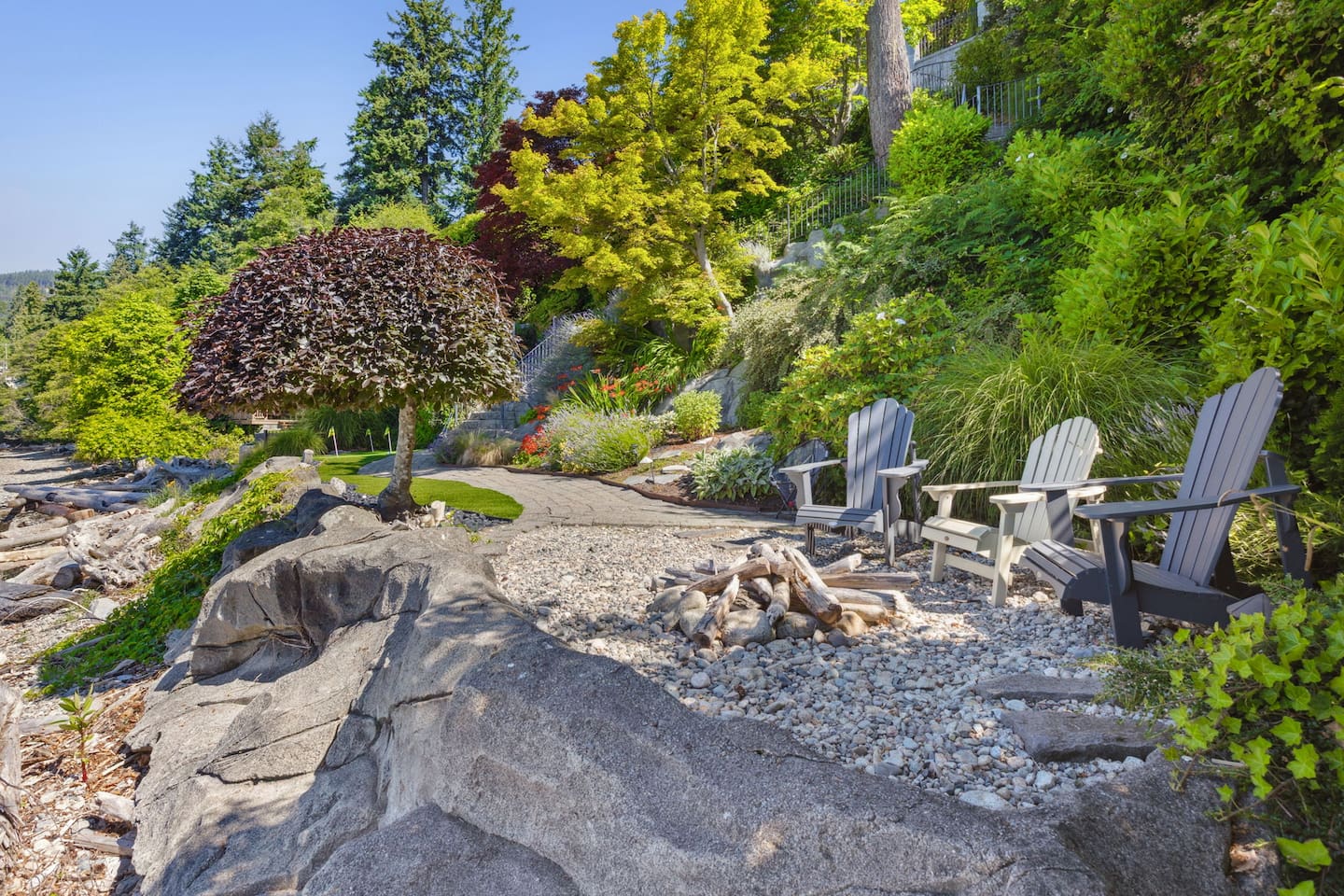 Direct access to your secluded private beach invites paddleboarding and kayaking (included), or contemplative beachcombing. Adjacent waterfront parks offer exclusive hiking trails and idyllic picnic enclaves, mere steps from your door.