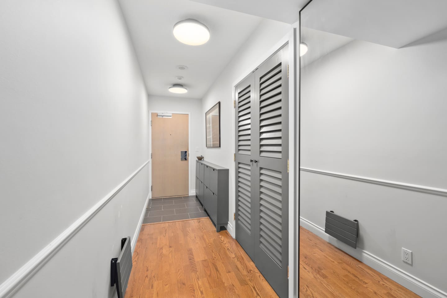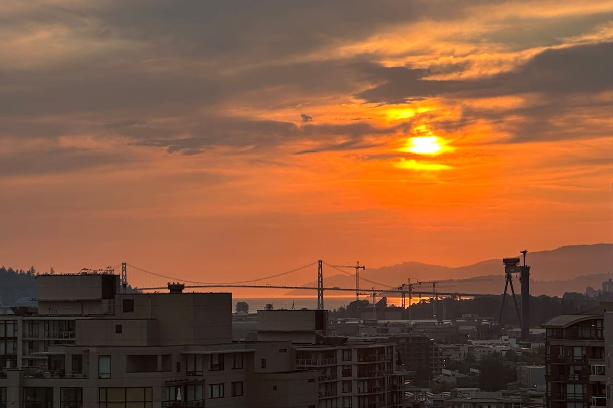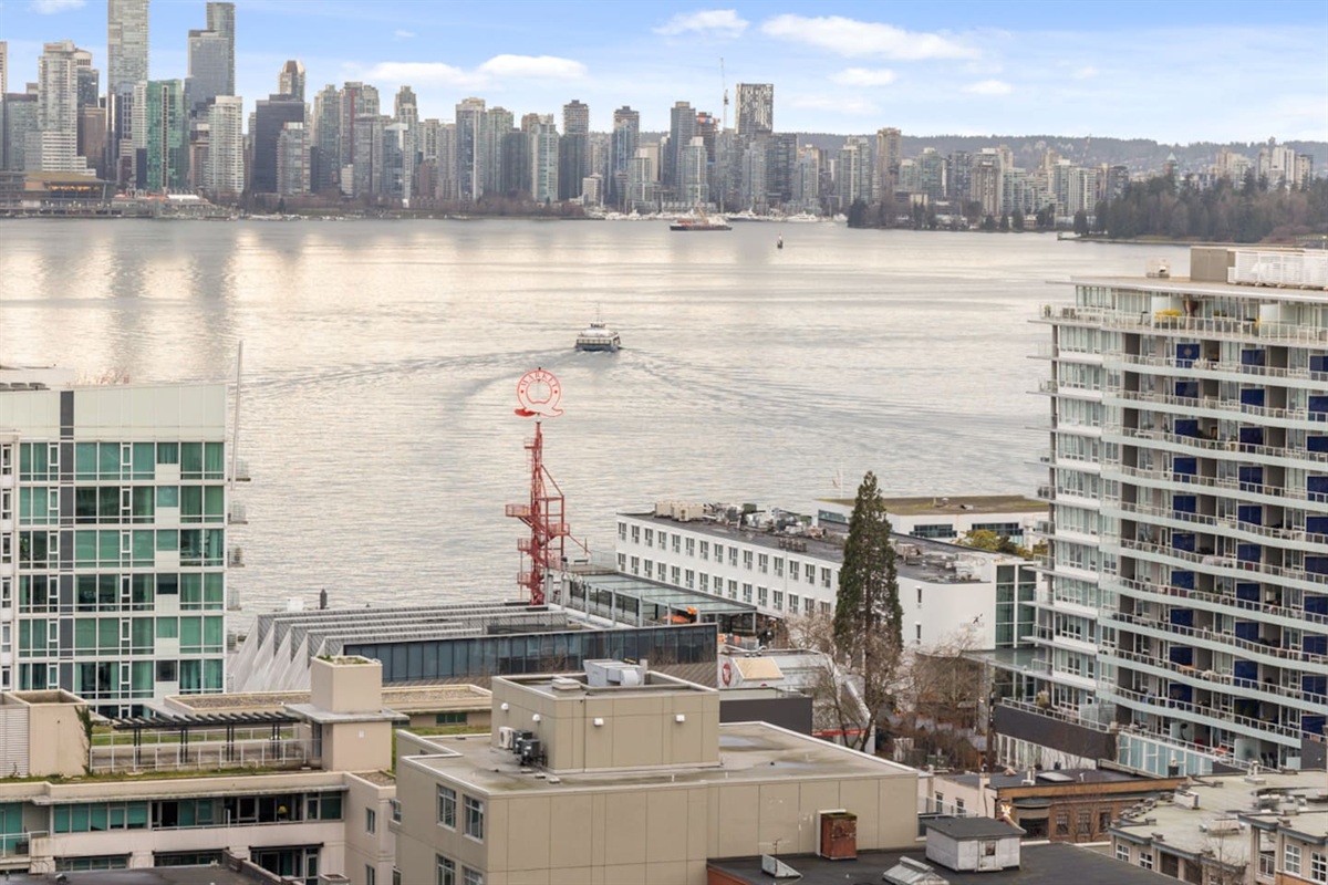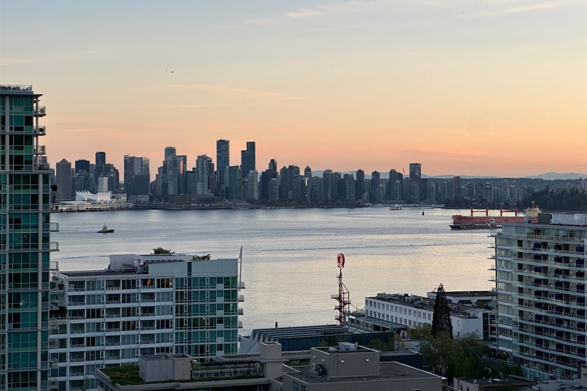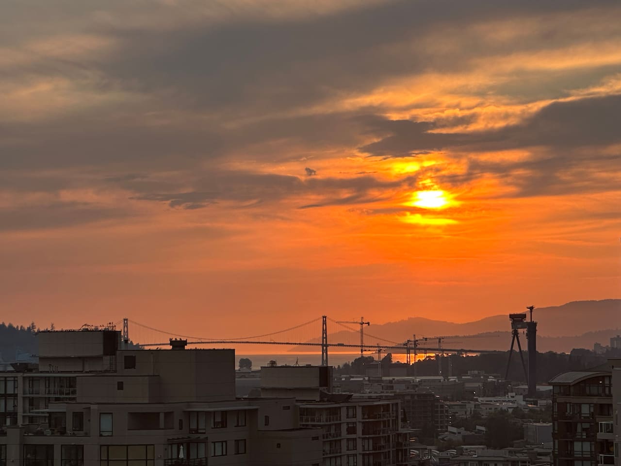 Enjoy panoramic views of downtown Vancouver, the Lions Gate Bridge, and Grouse Mountain, with floor-to-ceiling windows that fill the space with natural light.