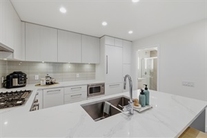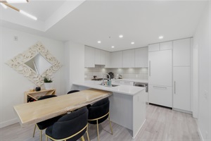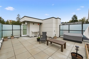 The bright main floor features an open-concept layout with oversized windows that fill the space with natural light. Cook and entertain in the sleek, fully equipped Bosch kitchen with a gas cooktop, ideal for preparing meals at home. Step up to your private rooftop patio—an inviting space to enjoy your morning coffee or unwind in the evening while taking in beautiful mountain views - perfect for relaxing.